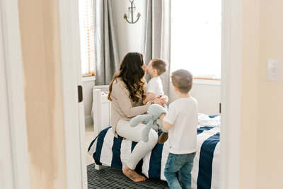 There is something so sweet about photographing your family in your own home. The kids are excited to show me their rooms and favorites toys and to have these memories of this time in your life in your own environment is so special. Do not worry if your home is not perfect. No one’s home is! I carve out little nooks and focus on where there is great light and true connection, belly laughs and real moments. The focus is always on your love vs your home. That is the good stuff!